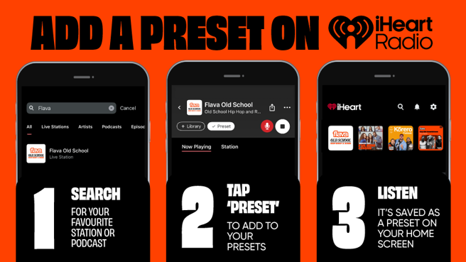 Saving Flava and yourfavouritepodcasts and playlists as a preset is just a tap away!Now yourfavouritestations and podcasts will always be the first thing you see when you open the iHeart app or connect to Apple CarPlay or Android Auto.