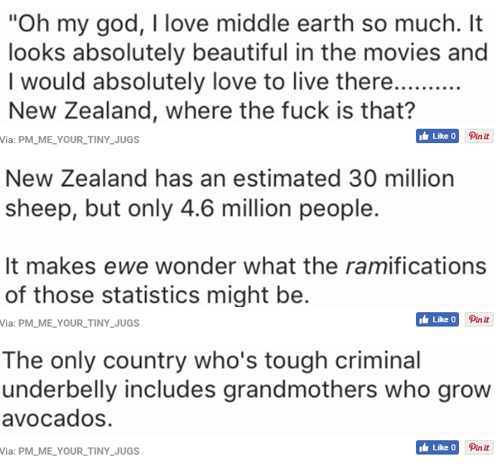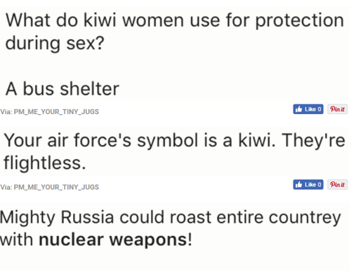 At the same time, because we're kiwis we'll just laugh it off in the kick back way we do and see the funny side of what can only be your feedback about us. In case you haven't seen it online yet, the Internet is currently roasting us kiwis and everything we love about our beautiful country and they're as funny as you think they would be.