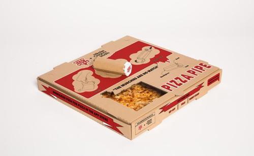 Any stoner will know that pizza is the best food to eat when you have the munchies, well it's time to get even more excited for the best snack because a New York based designer has created a pizza box that doubles as a pipe. The cardboard has a pre-set cut out that you rip off and role into a circle, then inside the box is a ceramic bowl you attach to the end of the cardboard.